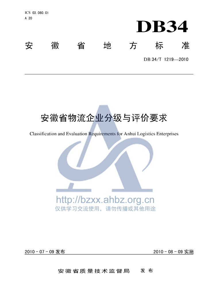 DB34/T 1219-2010 安徽省物流企业分级与评价要求