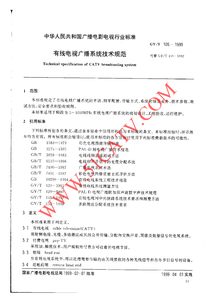 GY/T 106-1999 有线电视广播系统技术规范
