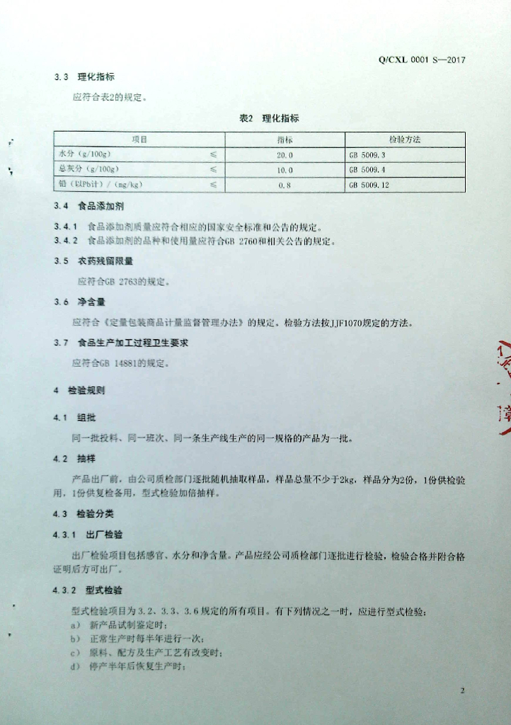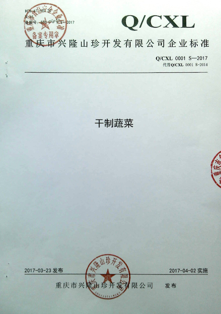 Q/CXL 0001S-2017 干制蔬菜