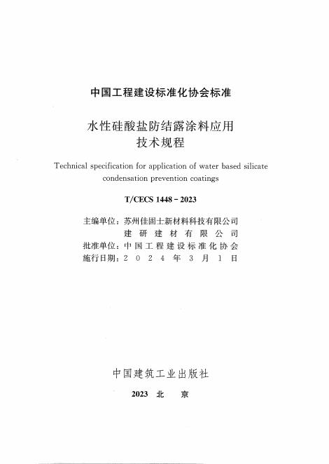 T/CECS 1448-2023 水性硅酸盐防结露涂料应用技术规程