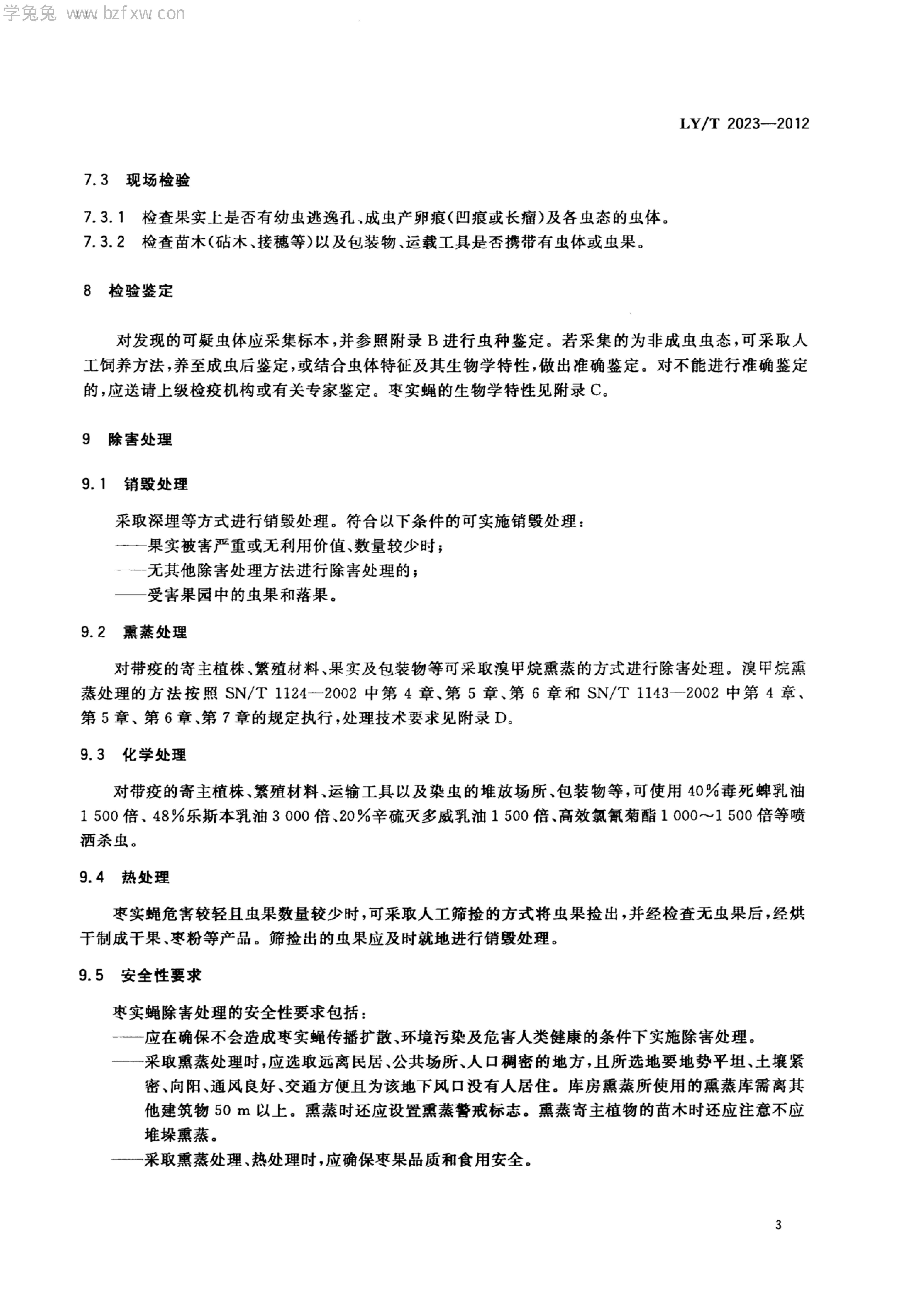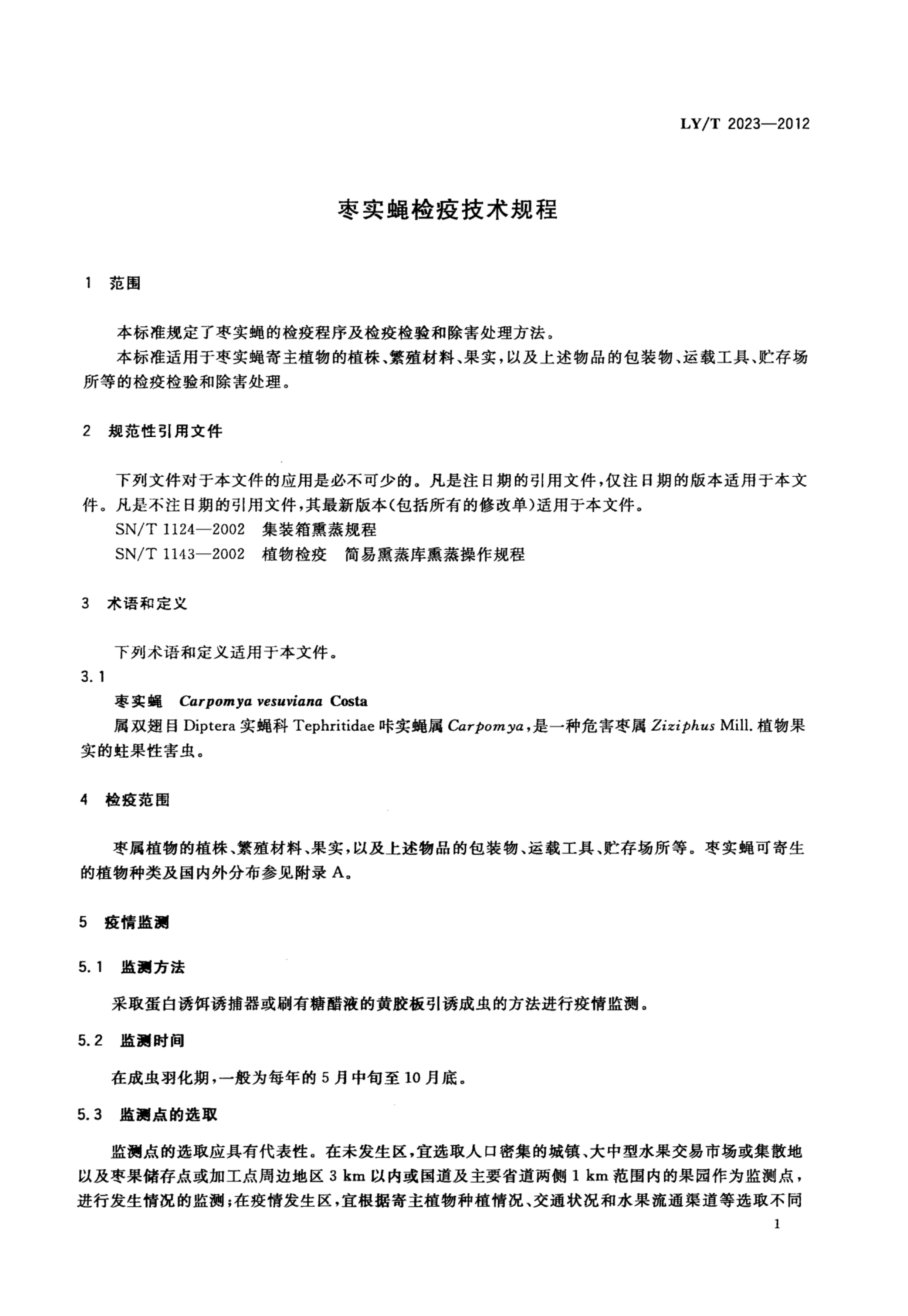 LY/T 2023-2012 枣实蝇检疫技术规程