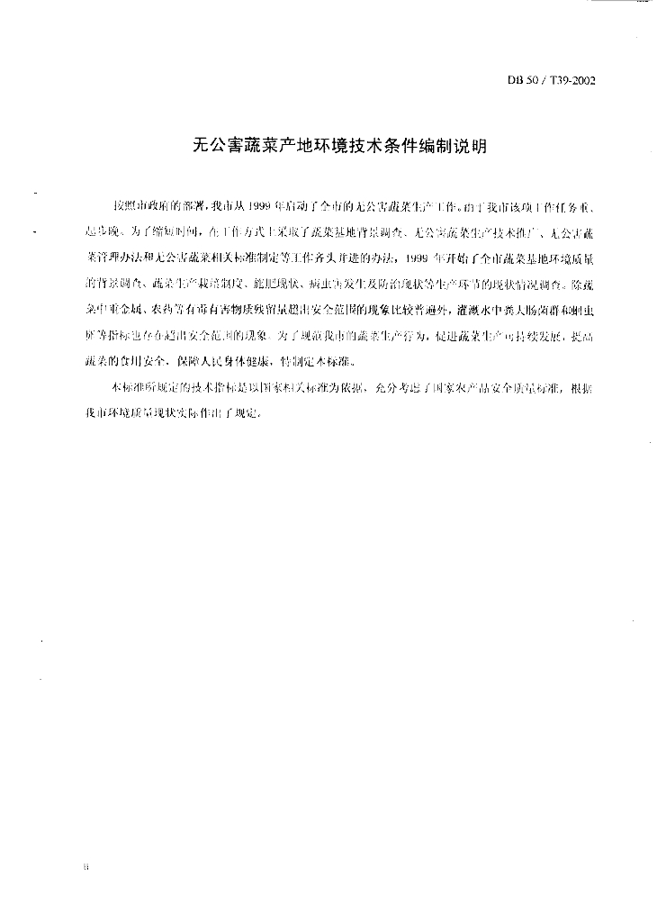 DB50/T 39-2002 无公害蔬菜产地环境技术条件