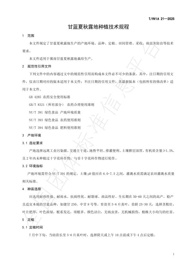T/HVIA 21-2025 甘蓝夏秋露地种植技术规程