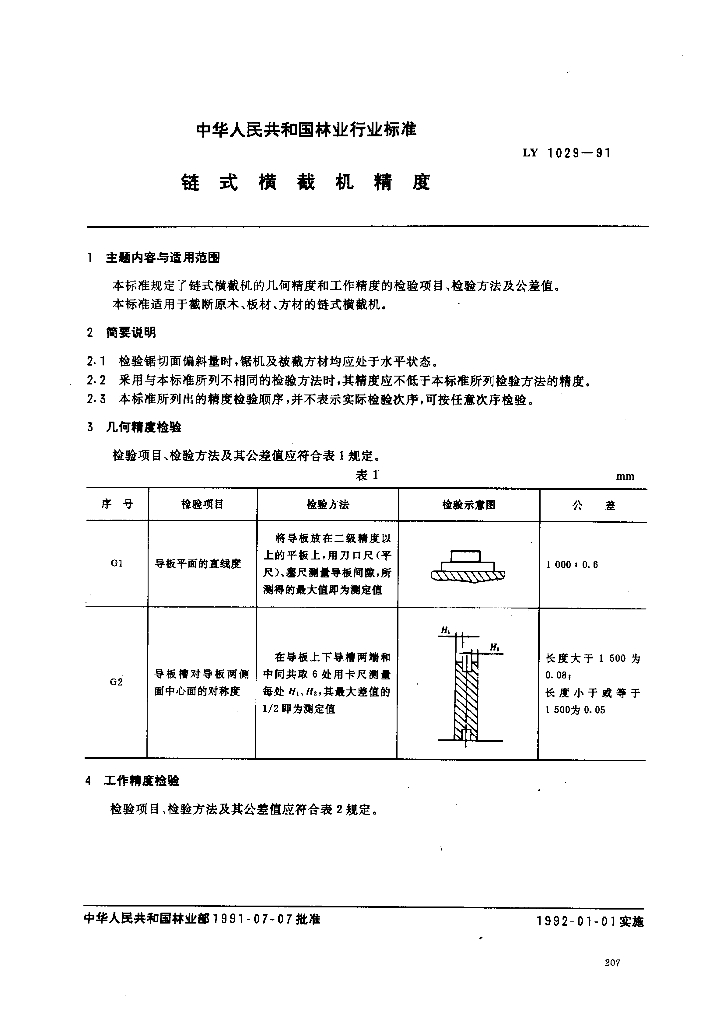 LY 1029-1991 链式横截机精度