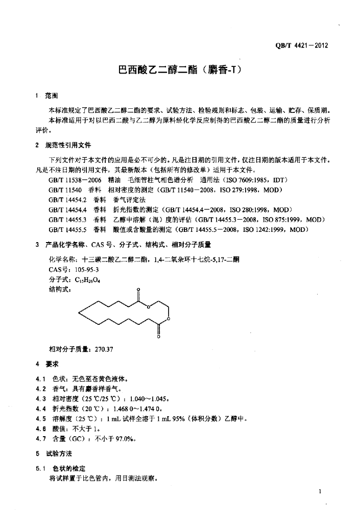 QB/T 4421-2012 巴西酸乙二醇二酯(麝香-T)