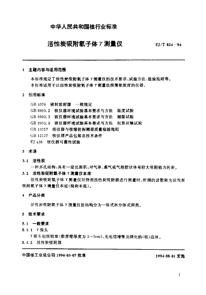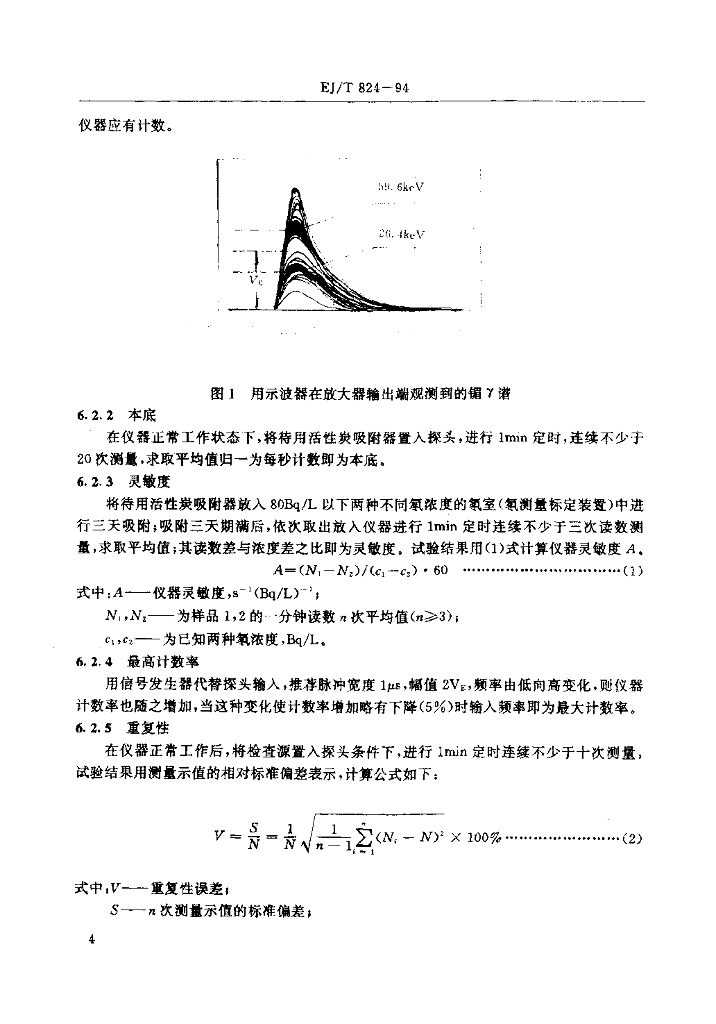 EJ/T 824-1994 活性炭吸附氡子体γ测量仪