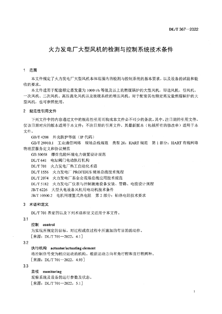DL/T 367-2022 火力发电厂大型风机的检测与控制系统技术条件