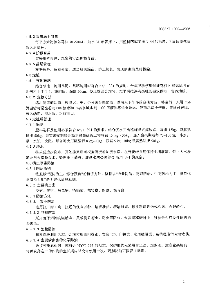 DB32/T 1002-2006 绿色食品 辣椒生产技术规程