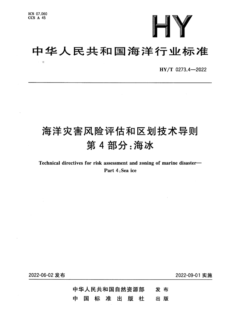 HY/T 0273.4-2022 海洋灾害风险评估和区划技术导则 第4部分:海冰