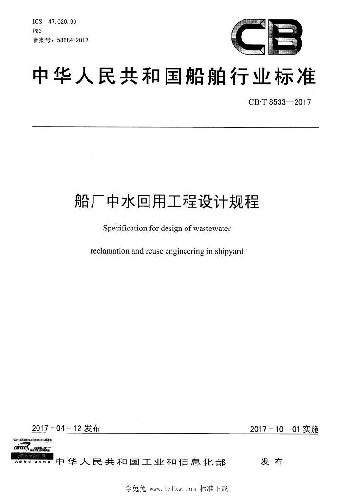CB/T 8533-2017 船厂中水回用工程设计规程