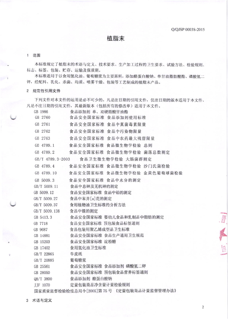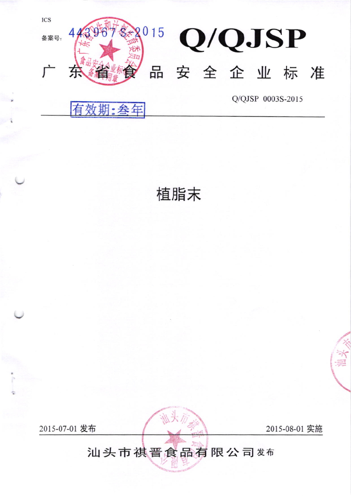 Q/QJSP 0003S-2015 汕头市祺晋食品有限公司 植脂末