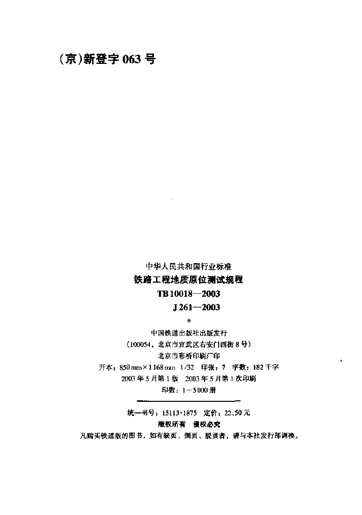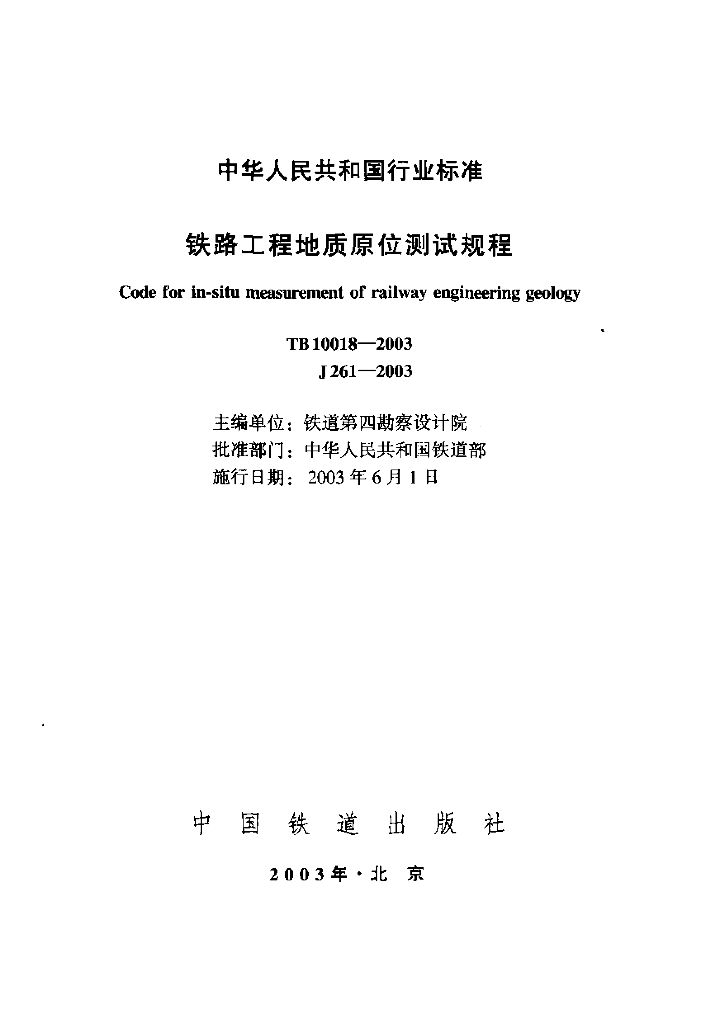 TB 10018-2003 铁路工程地质原位测试规程