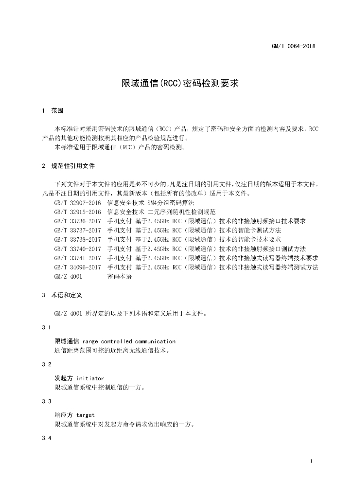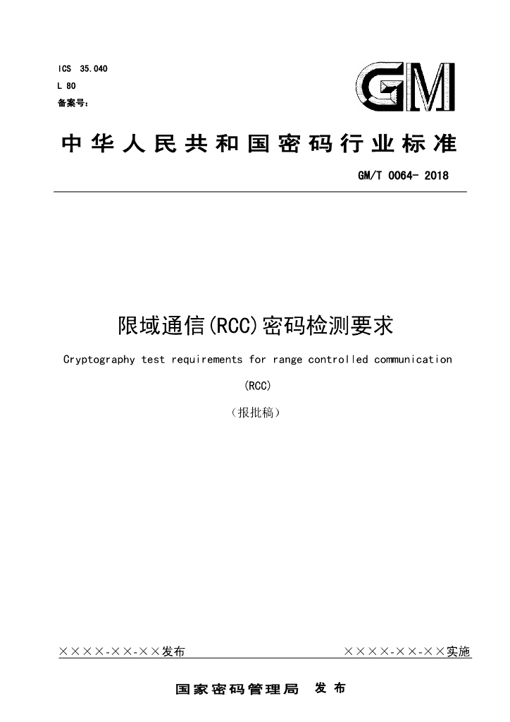 GM/T 0064-2018 限域通信(RCC)密码检测要求