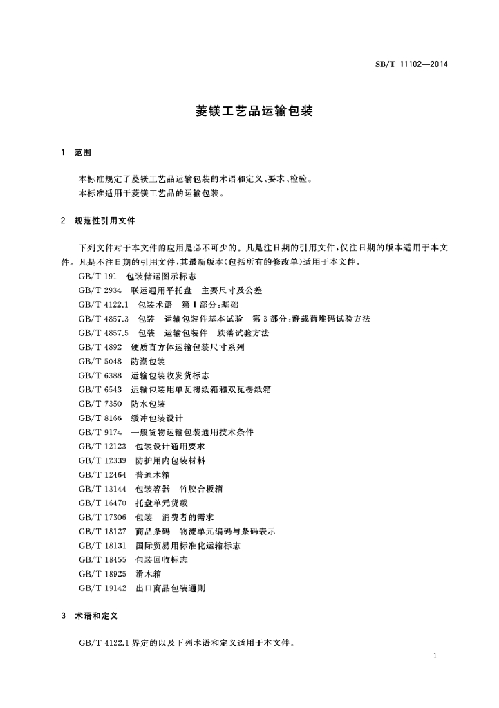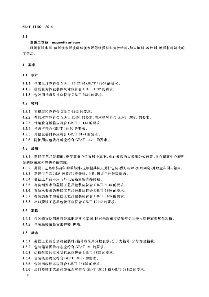 SB/T 11102-2014 菱镁工艺品运输包装