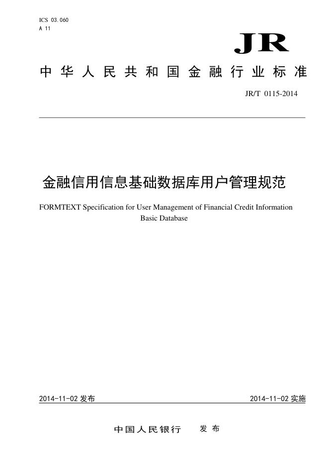 JR/T 0115-2014 金融信用信息基础数据库用户管理规范