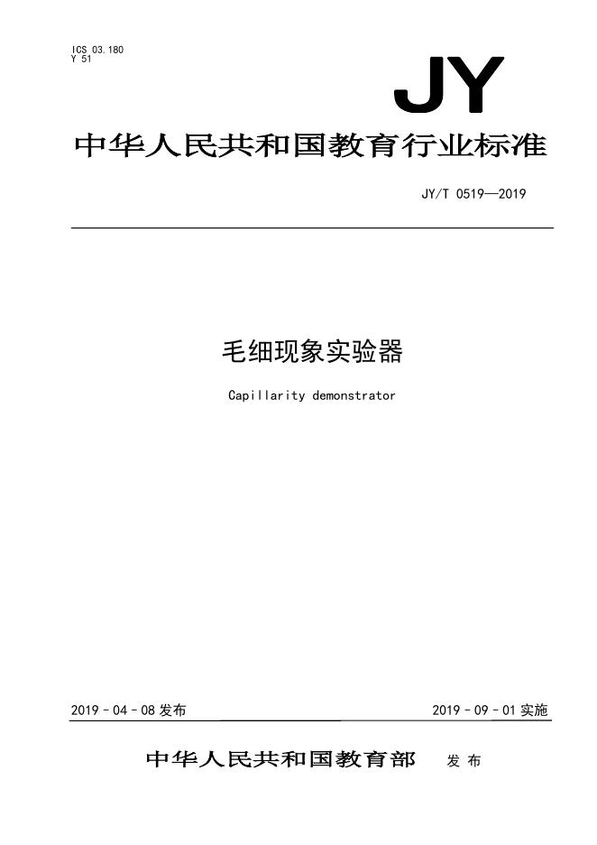JY/T 0519-2019 毛细现象实验器