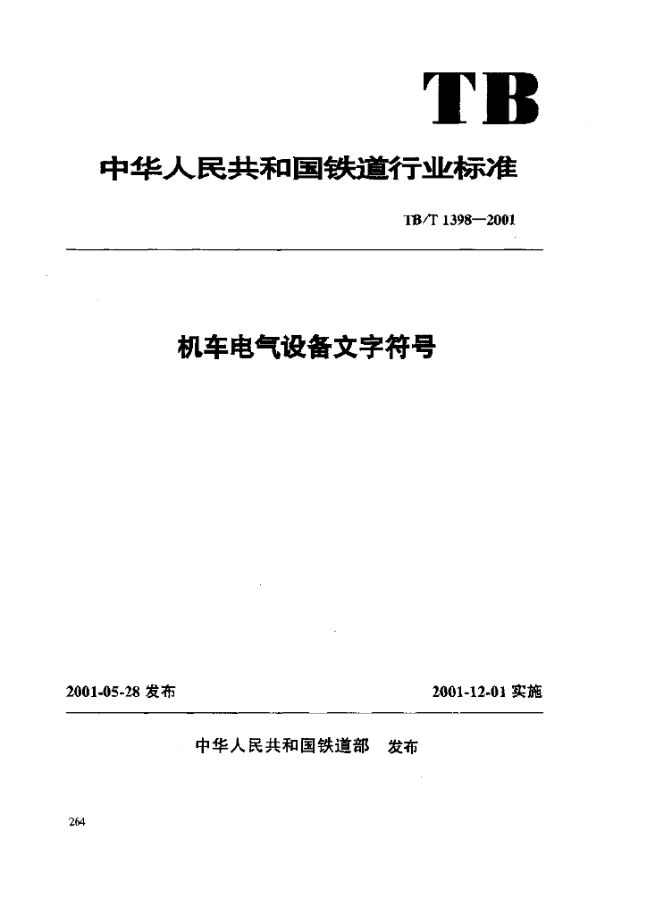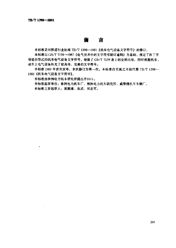 TB/T 1398-2001 机车电气设备文字符号