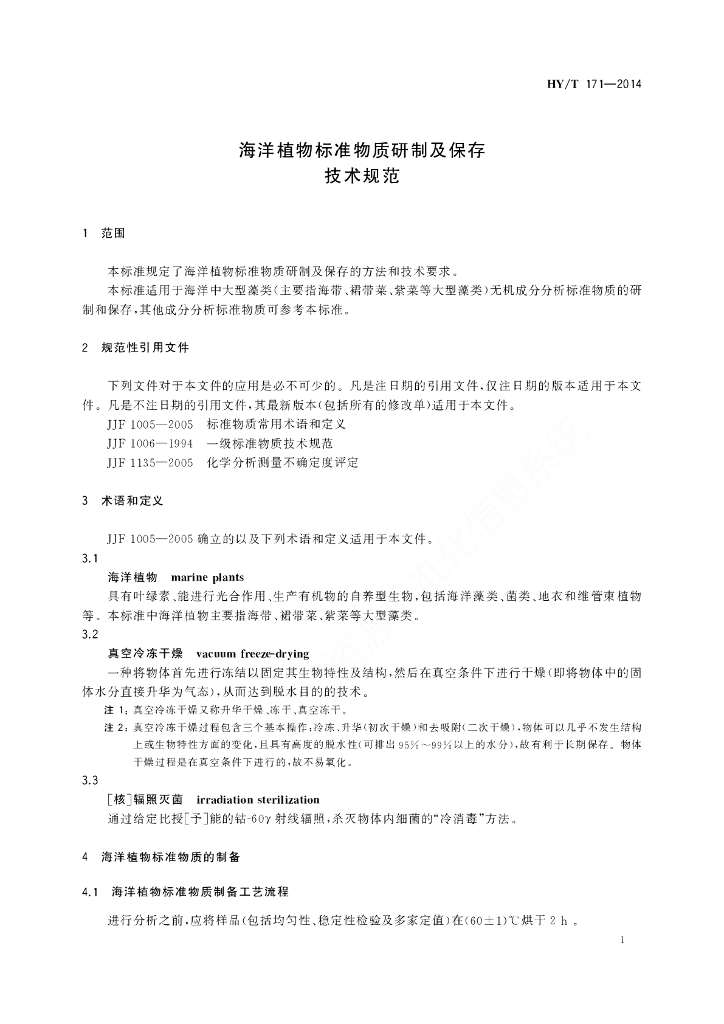 HY/T 171-2014 海洋植物标准物质研制及保存技术规范