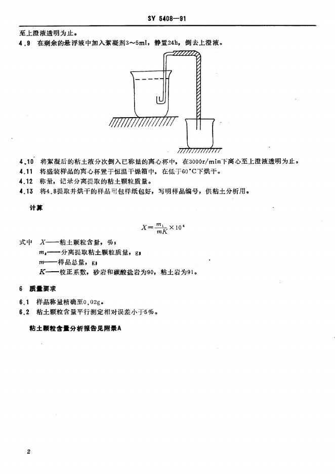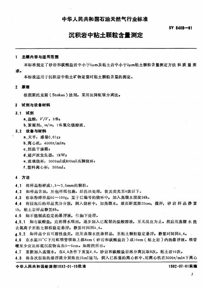 SY 5408-1991 沉积岩中粘土颗粒含量测定