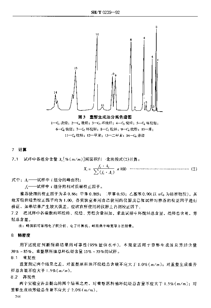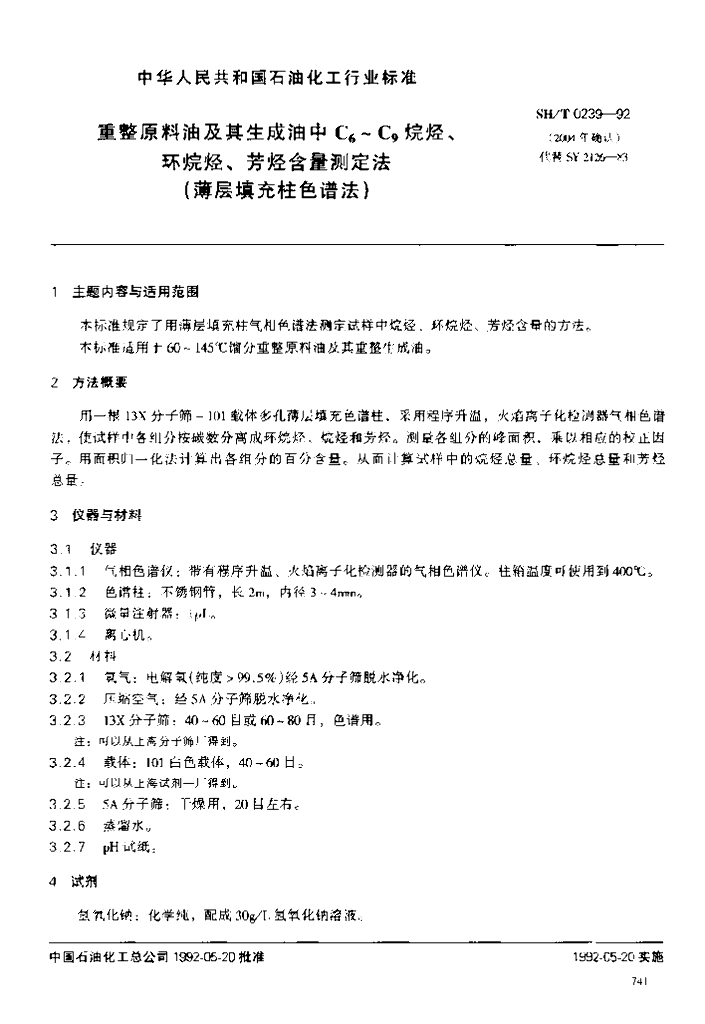 SH/T 0239-1992 重整原料油及其生成油中C6-C9烷烃、环烷烃、芳烃含量测定法