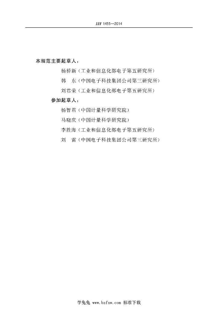 杨桥新(工业和信息化部电子第五研究所)、韩东(中国电子科技集团公司第三研究所)、刘君荣(工业和信息化部电子第五研究所)、杨智君(中国计量科学研究院)、马晓庆(中国计量科学研究院)、李胜海(工业和信息化部电子第五研究所)、刘雷(中国电子科技集团公司第三研究所)