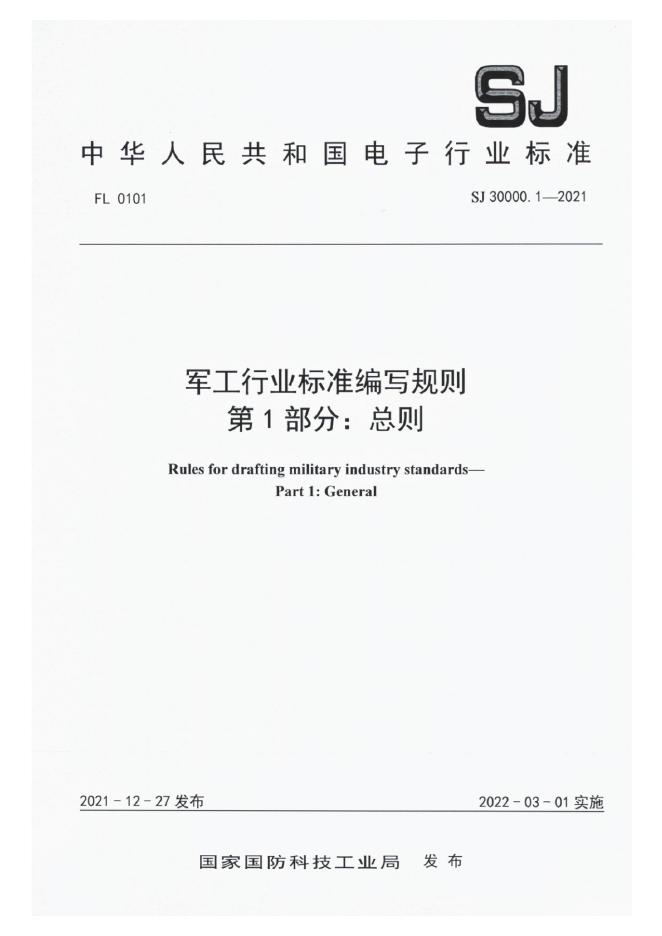SJ 30000.1-2021 军工行业标准编写规则 第1部分:总则