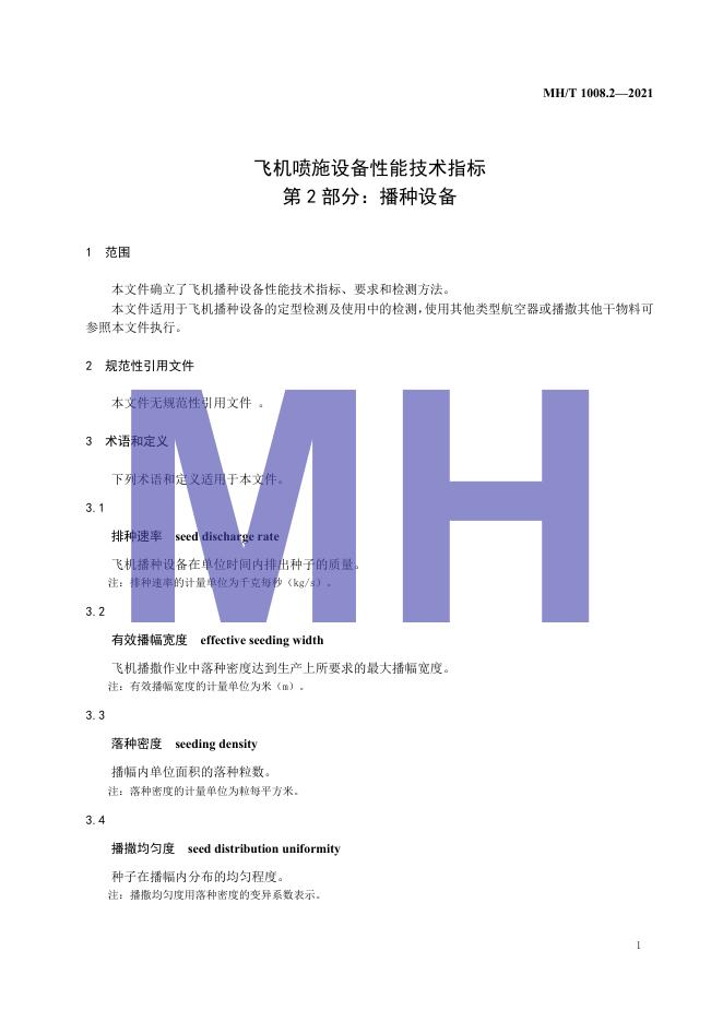 MH/T 1008.2-2021 飞机喷施设备性能技术指标 第2部分 播种设备