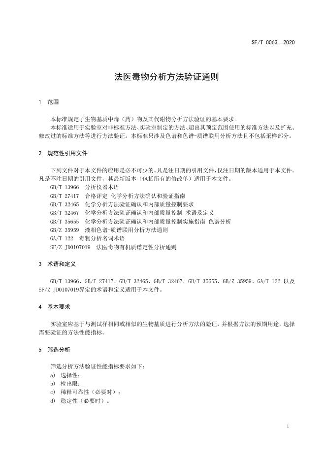 SF/T 0063-2020 法医毒物分析方法验证通则