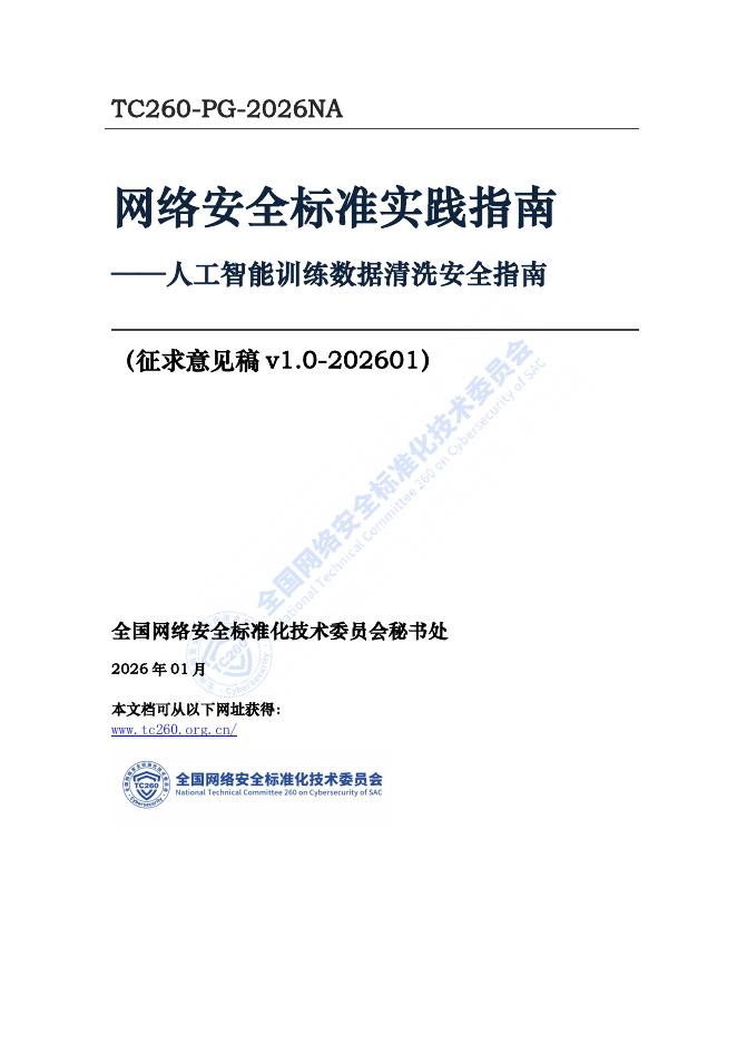 TC260-PG-2026NA 网络安全标准实践指南:人工智能训练数据清洗安全指南(征求意见稿 v1.0-202601)