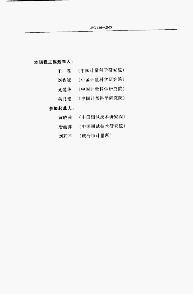 王雁(中国计量科学研究院)、刘香斌(中国计量科学研究院)、党爱华(中国计量科学研究院)、吴月艳(中国计量科学研究院)、黄晓荣(中国测试技术研究院)、唐渝萍(中国测试技术研究院)、刘莉平(威海市计量所)