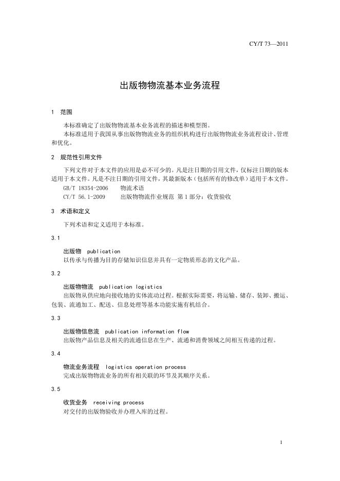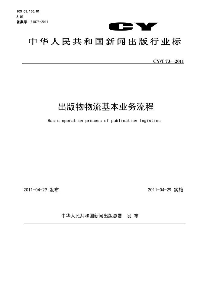 CY/T 73-2011 出版物物流基本业务流程