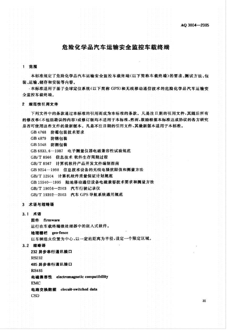 AQ 3004-2005 危险化学品汽车运输安全监控车载终端