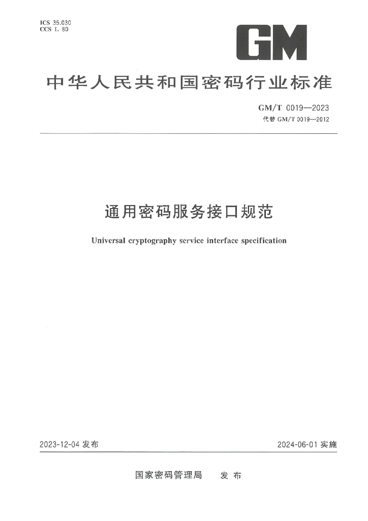 - 代替标准:GM/T 0019-2012