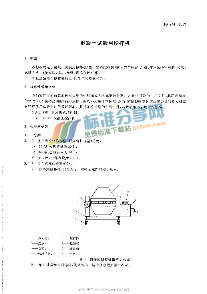 JG 244-2009 混凝土试验用搅拌机