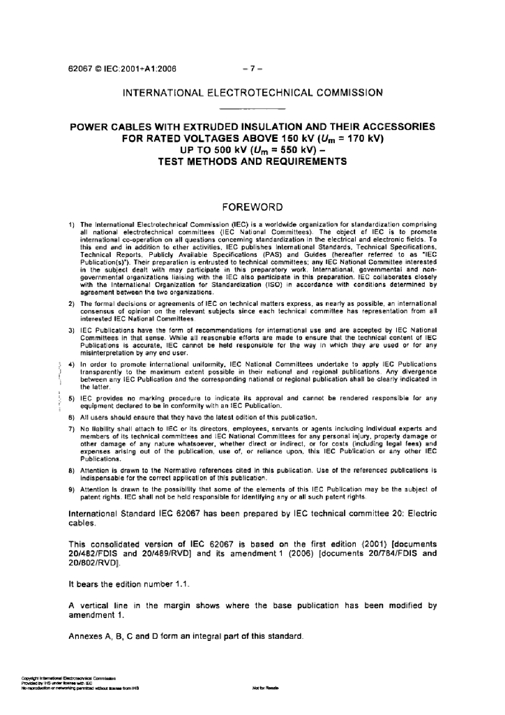 IEC 62067-2006 额定电压为150KV到500KV的挤塑绝缘及其配件的电力电缆