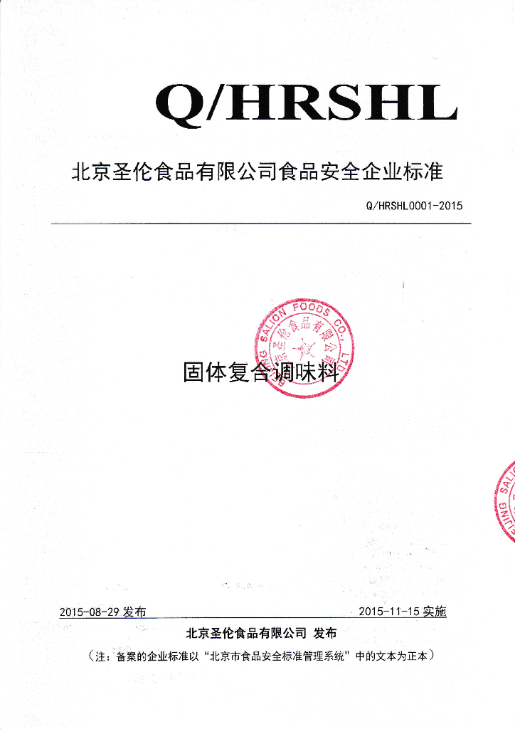 Q/HRSHL 0001-2015 北京圣伦食品有限公司 固体复合调味料