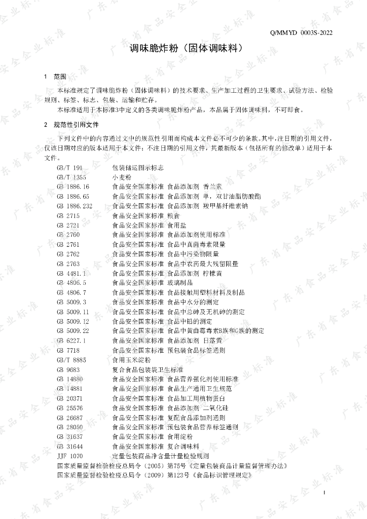 Q/MMYD 0003S-2022 调味脆炸粉(固体调味料)