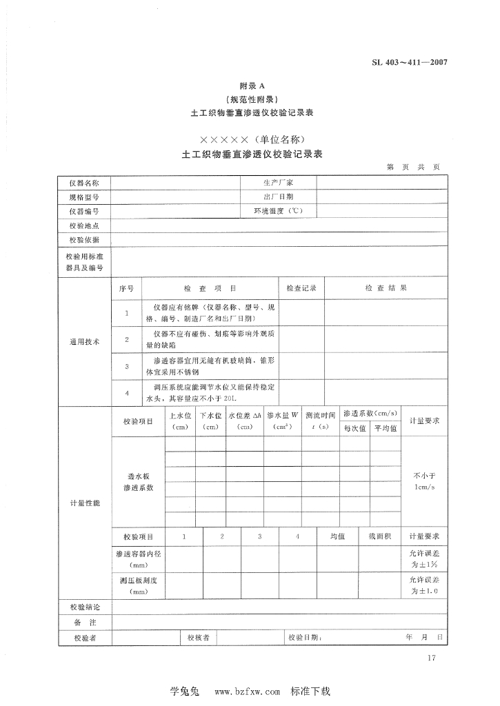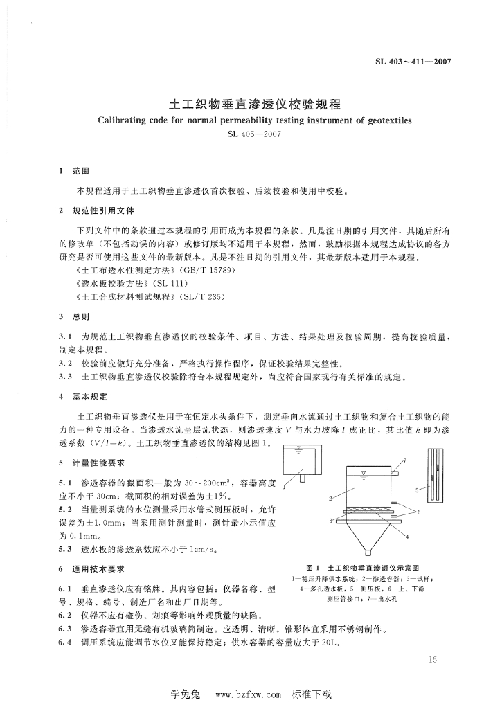 SL 405-2007 土工织物垂直渗透仪校验规程