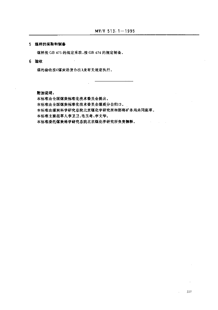 MT/T 513.1-1995 合成氨用邯郸矿务局煤技术条件