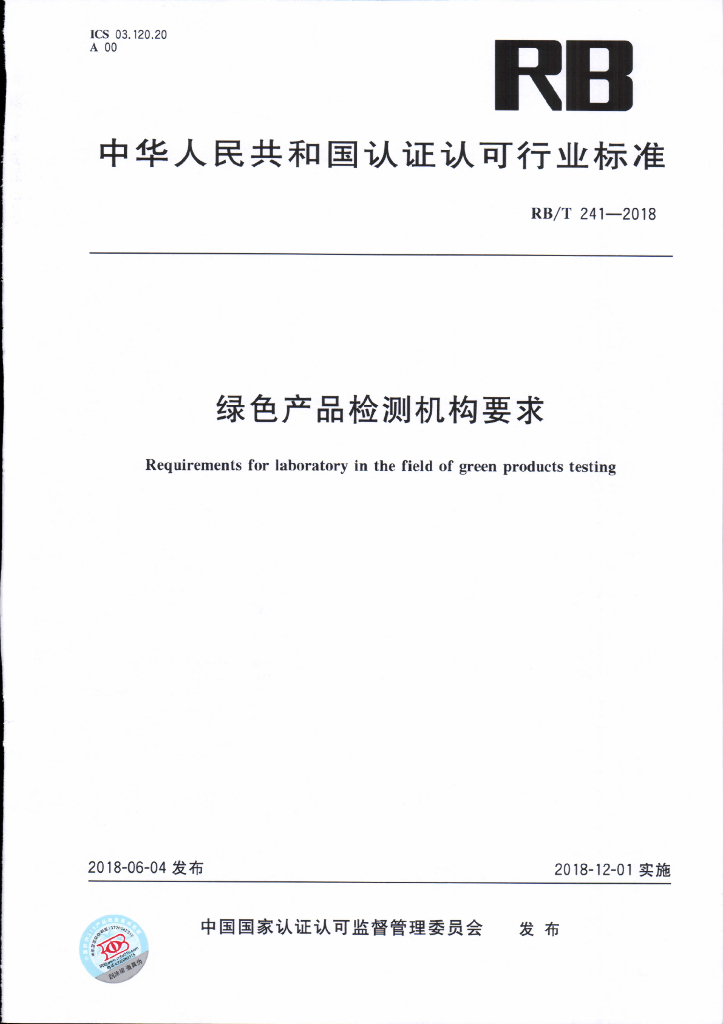 RB/T 241-2018 绿色产品检测机构要求