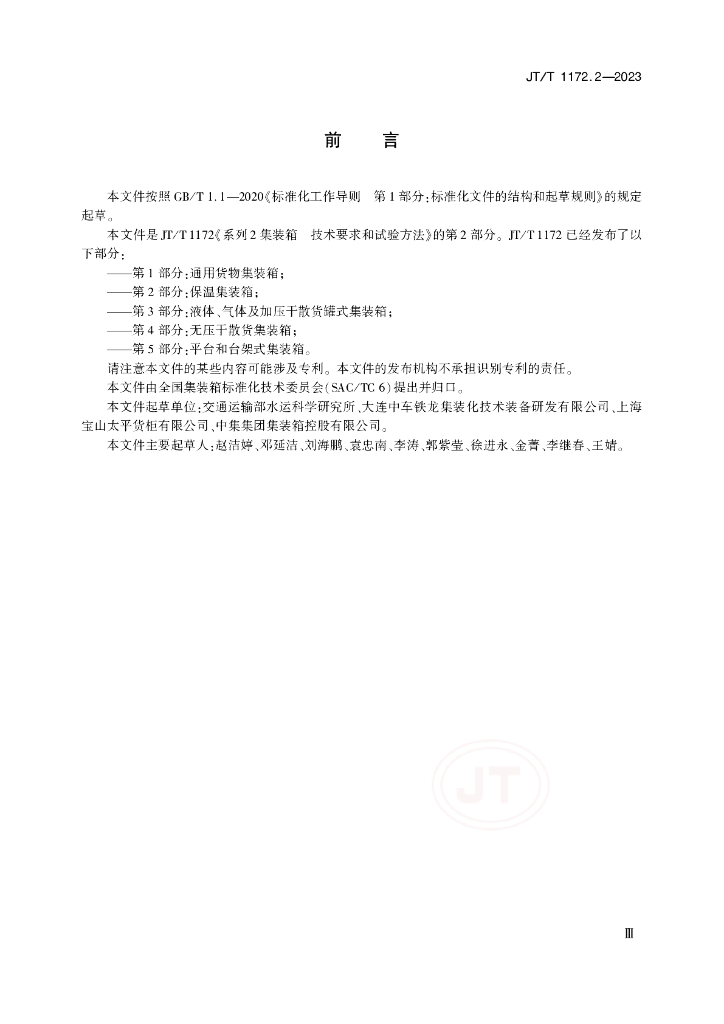 交通运输部水运科学研究所、大连中车铁龙集装化技术装备研发有限公司、上海宝山太平货柜有限公司、中集集团集装箱控股有限公司