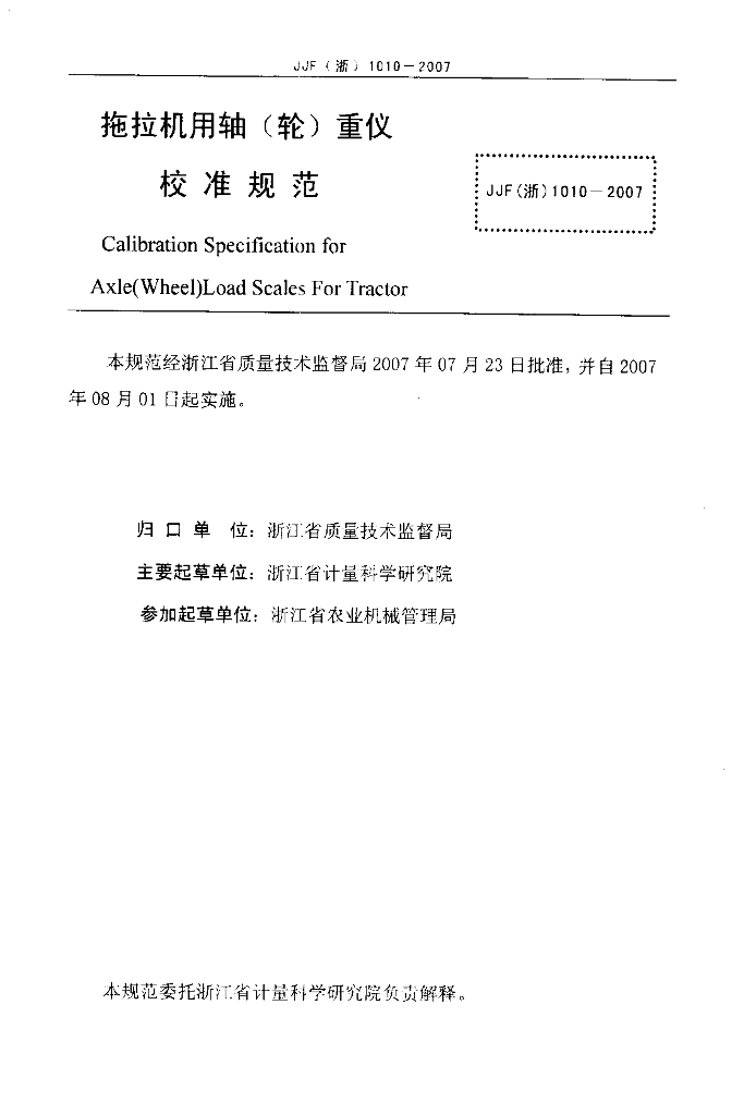 JJF(浙)1010-2007 拖拉机用轴(轮)重仪