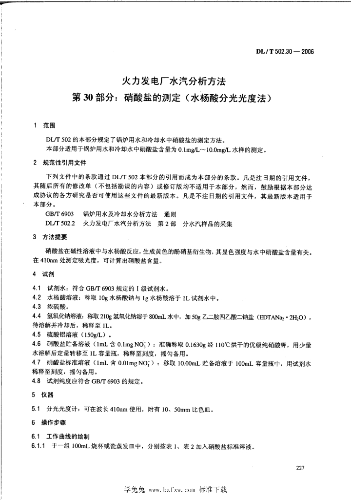 DL/T 502.30-2006 火力发电厂水汽分析方法 第30部分:硝酸盐的测定(水杨酸分光光度法)
