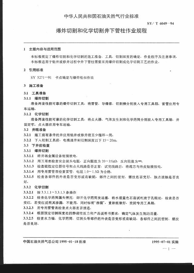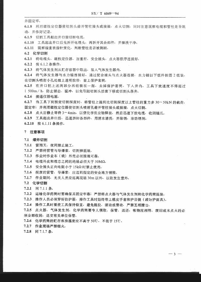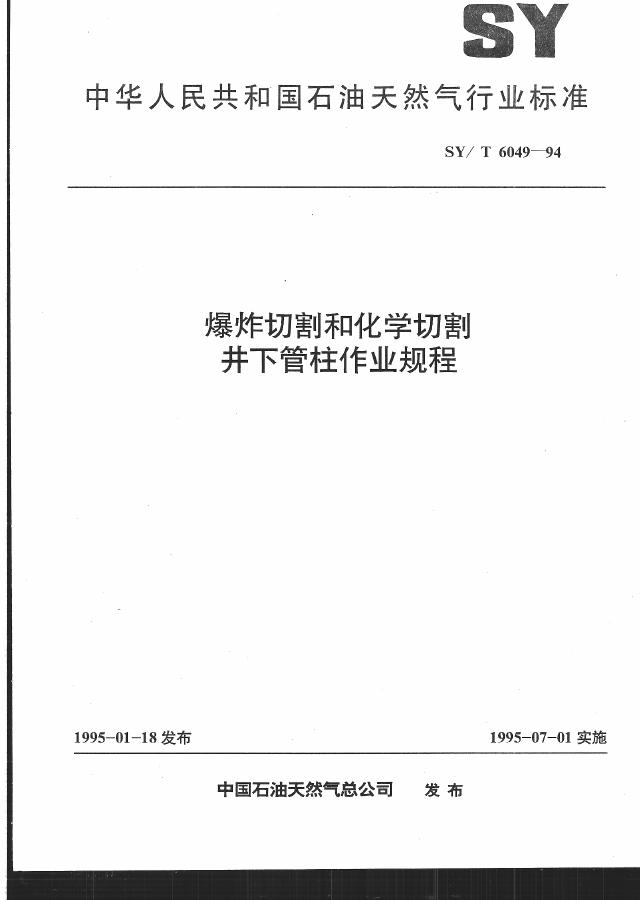 SY/T 6049-1994 爆炸切割和化学切割井下管柱作业规程