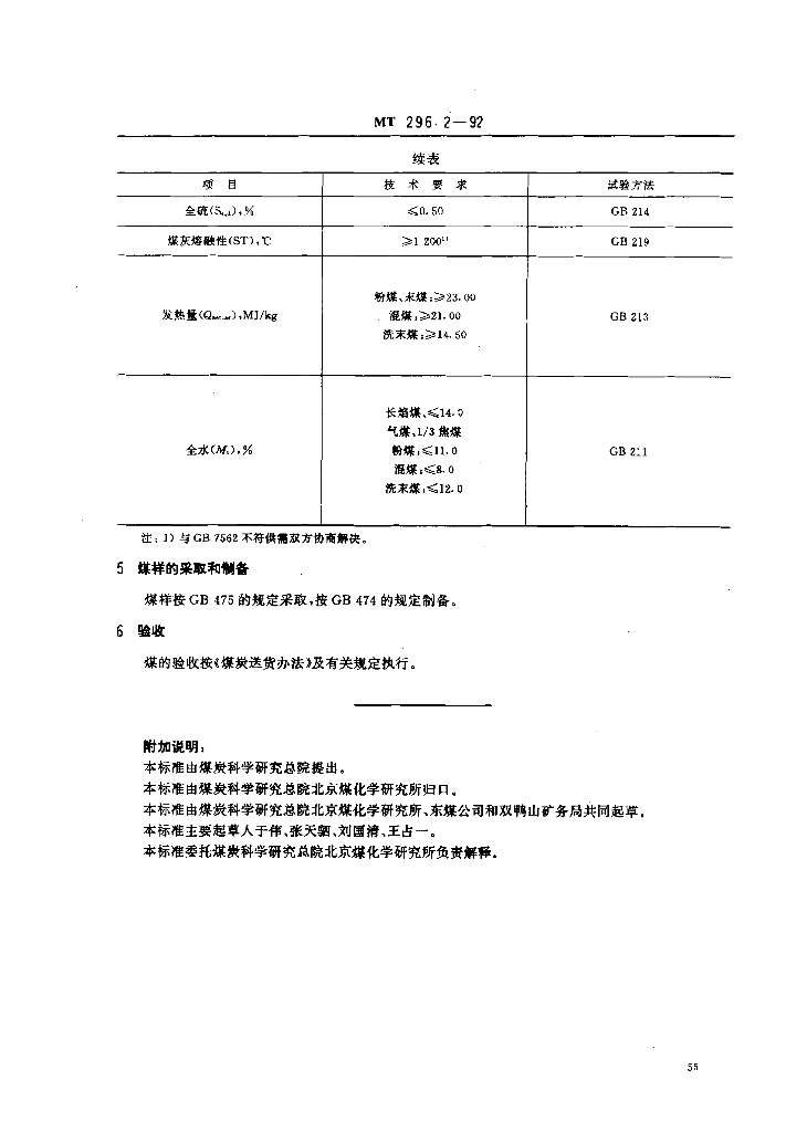 MT 296.2-1992 发电煤粉锅炉用双鸭山矿务局煤技术条件