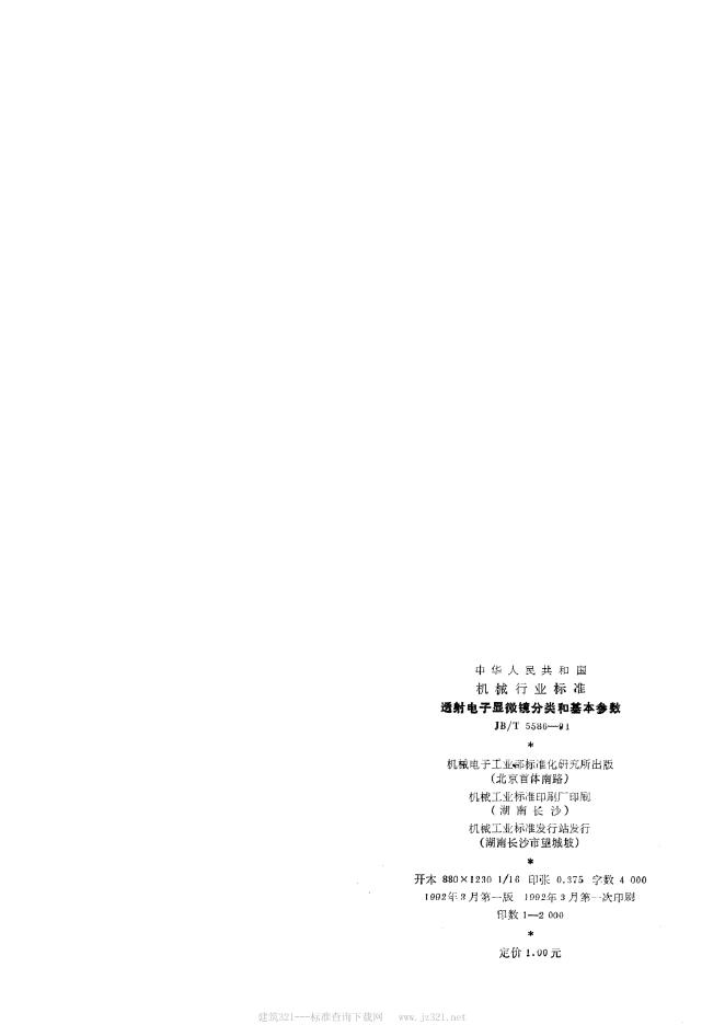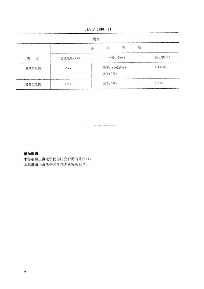 JB/T 5586-1991 透射电子显微镜分类和基本参数