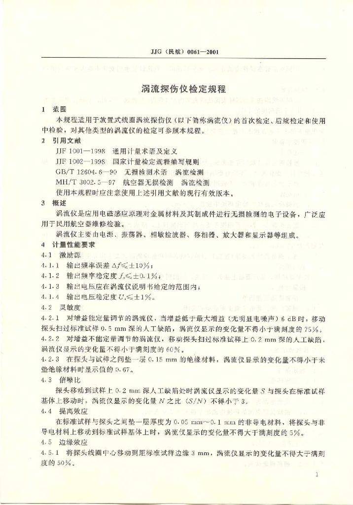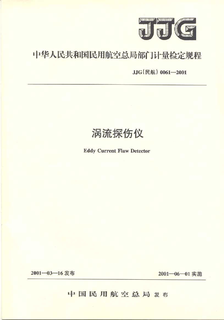 JJG(民航)0061-2001 涡流探伤仪检定规程