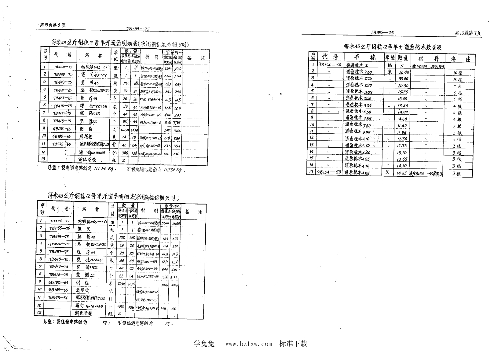 TB/T 399-1975 每米43和50公斤钢轨9、12号单开道岔(型式尺寸)