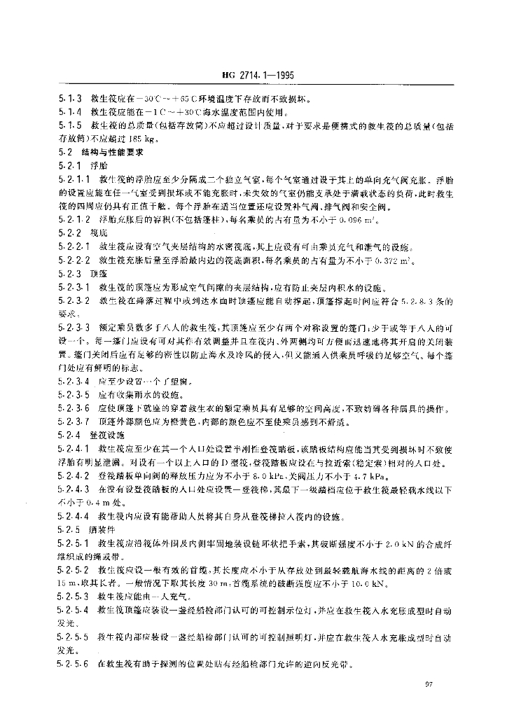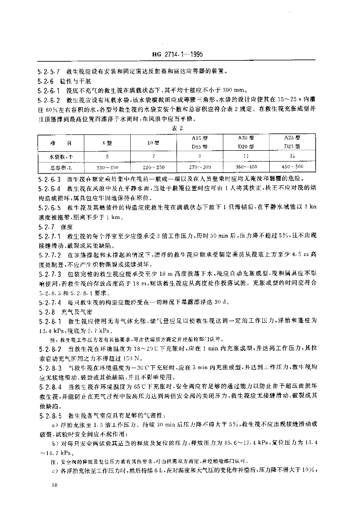 HG 2714.1-1995 气胀救生筏 A、D型筏