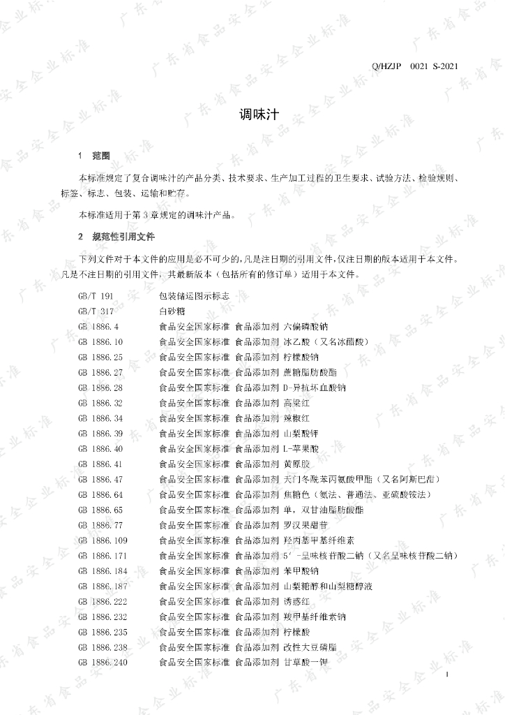 Q/HZJP 0021S-2021 调味汁